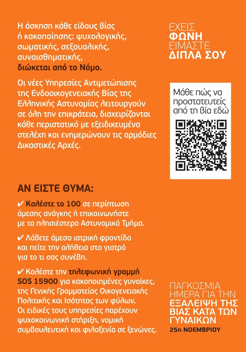 διανέμεται, αναγράφεται με έντονα γράμματα «έχεις φωνή, είμαστε δίπλα